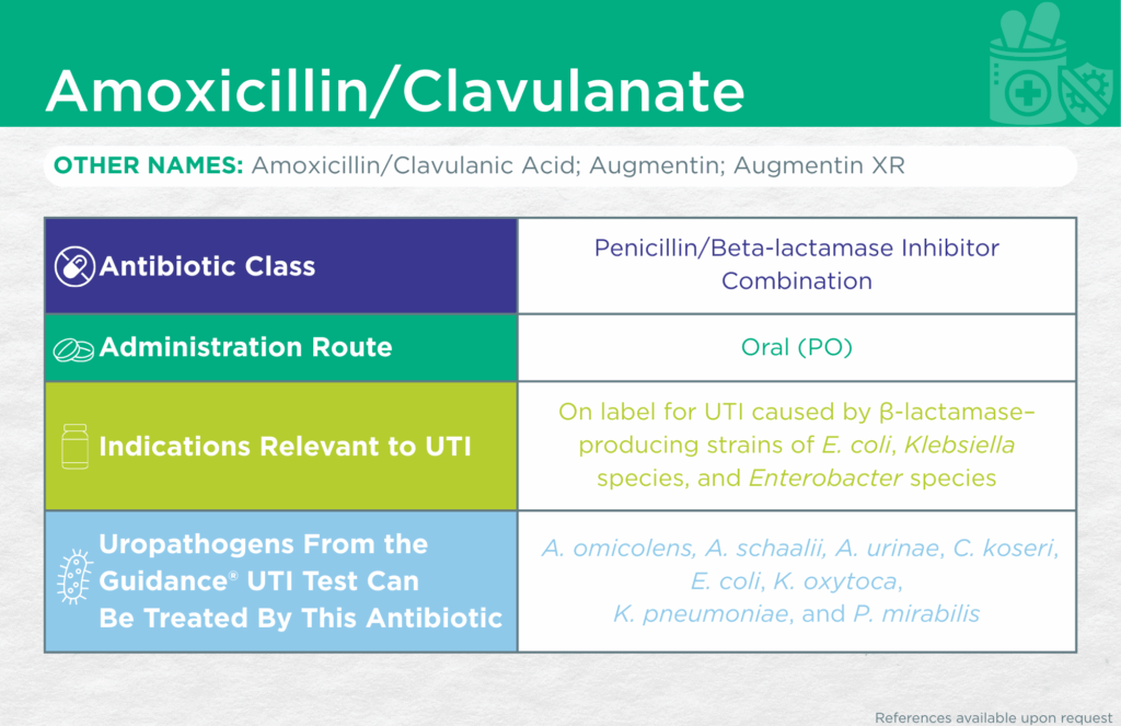 CLSI and/or FDA documents support the efficacy of this antibiotic against the following organisms from the Guidance® UTI test: Aerococcus urinae, Citrobacter koseri, Escherichia coli, Klebsiella oxytoca, Klebsiella pneumoniae, and Proteus mirabilis